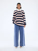 The Hallie Rugby Top, in bold navy and pink stripes, is cut oversized from lightweight loopback terry.